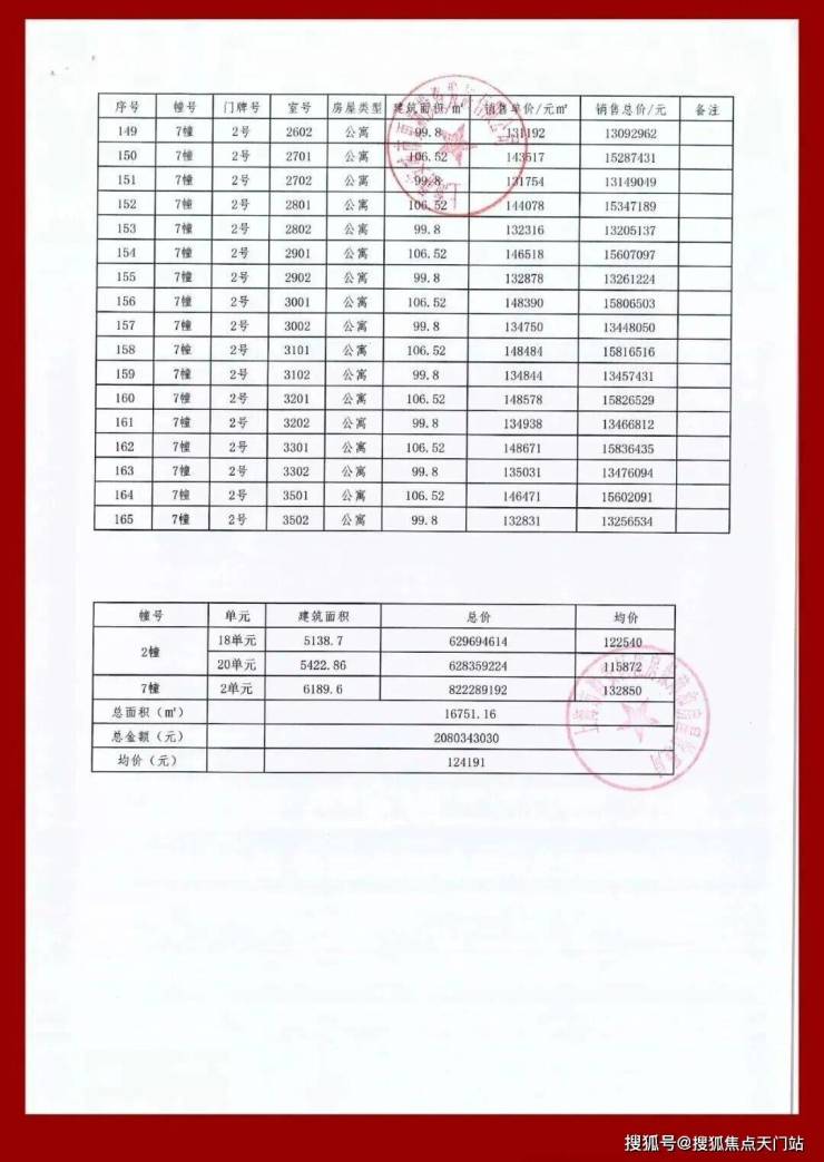 均价124191元/㎡ 共165套