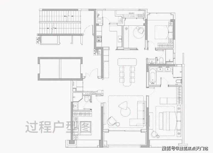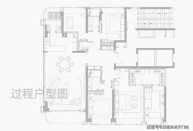 户内楼面高度不一致,错开之处有楼梯联系。但没有完全分为两层。(适合大面积住宅,小户型会显得局促)