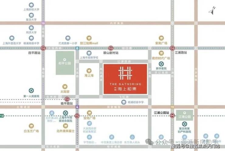 内嵌5000㎡自持复合商业及900㎡邻里中心;教育医疗资源密集,1公里内汇聚打虎山路第一小学、新华医院(三甲);步行10分钟可达和平公园、江浦公园,北侧500米即控江路商圈(旭辉MALL、紫荆广场等),1公里直达55万方瑞虹天地综合体,2公里覆盖北外滩来福士、白玉兰广场