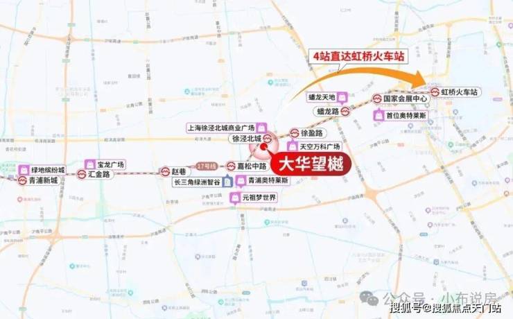 大华望樾直线距离徐泾北城站仅约80米,步行景观桥直达地铁口,1站到天空万科广场,2站达蟠龙天地;