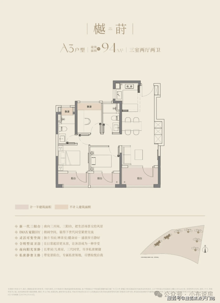 建筑面积约94-126㎡的全能尺度,全户型三开间三阳台配置,可以满足所有阶段家庭的空间需求。