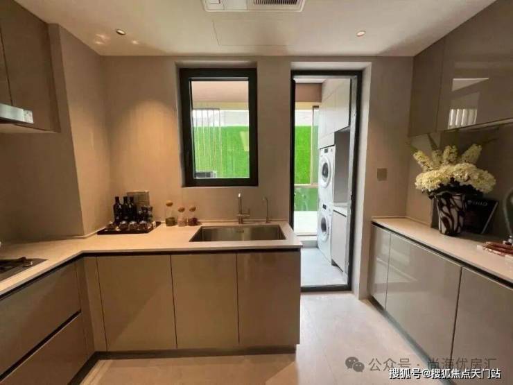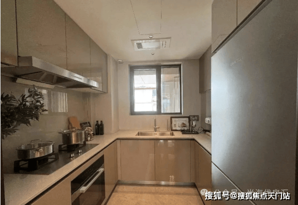 不仅配置了中西双厨房,还带有岛台,美诺的灶台也从两眼灶台变成了三眼灶台,冰箱升级为双开门冰箱,净水系统升级为软水。