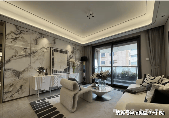 据介绍该户型的层高大约3米左右,大户型的层高会来到3.15米,101㎡户型客厅面宽3.9米,169㎡户型面宽5.45米,采用了当下非常流行的弧形吊顶。