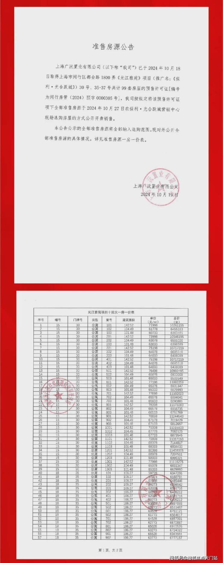 最新一房一价表: