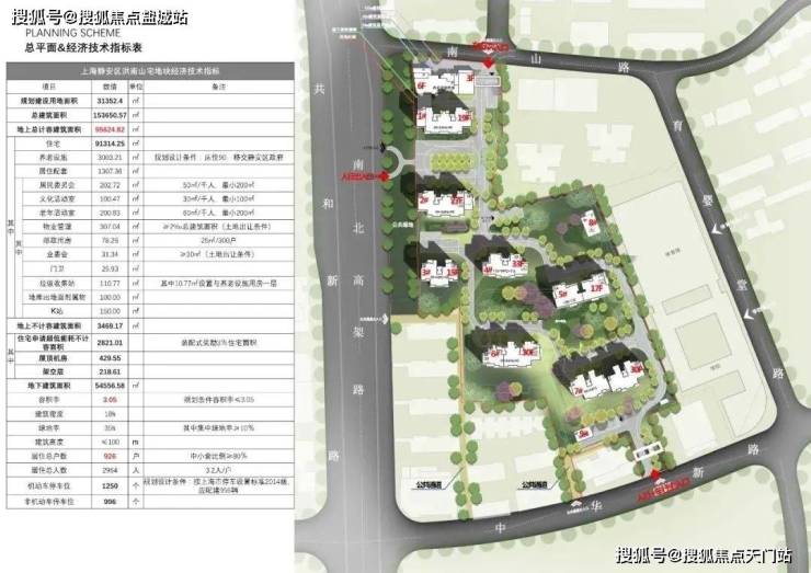 而北侧靠近南山路一侧还规划一幢最高6层的养老设施用房。在小区南北两侧的中华新路和南山路分别设有机动车出入口。