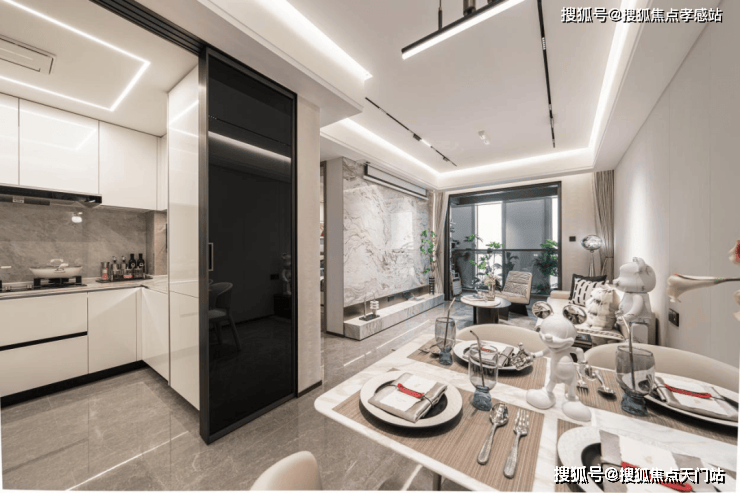 厨房空间,甄选西门子新款的抽油烟机、灶具、洗碗机等,甚至连大部分项目不配备的冰箱也是交付标准;还特别配置了轨道插座、前端净水器和凉霸;吊轨金属玻璃移门,既美观又方便清理。
