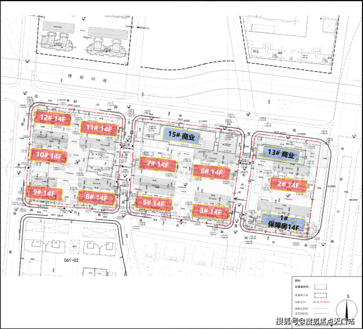 根据规划设计方案显示 ,项目拟建11幢14F住宅(含1幢保障房)、以及商业、配套用房等建筑。