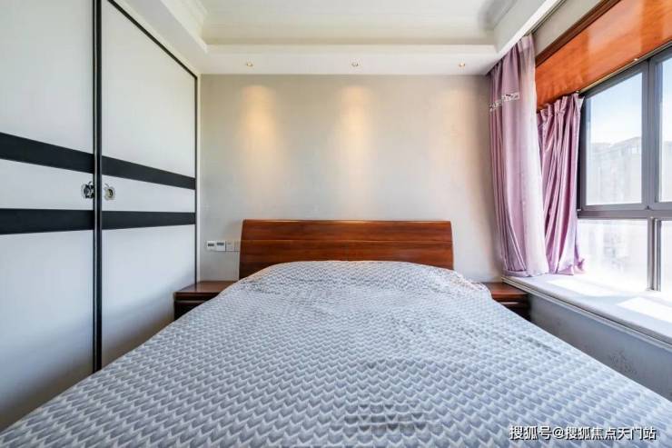 卧室暖光轻柔,紫帘半掩,窗外光影流转。躺床上,看会儿墙上电视,疲惫在静谧氛围里消散,安心感十足。
