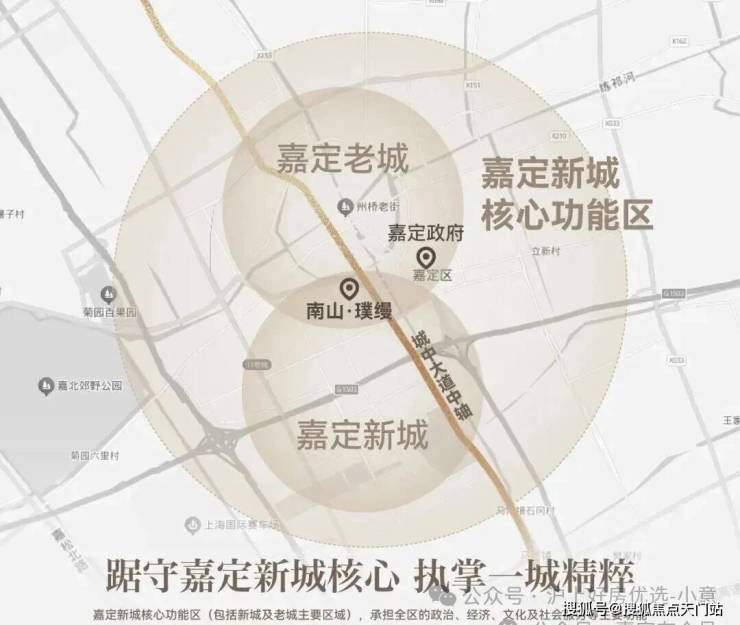 南山璞缦的占位,可以用四个字来概括:城市中轴!每一个伟大的板块,都有一条黄金主轴! 无论是巴黎的香榭丽舍大街,纽约中央公园,还是北京长安街、浦东的世纪大道...这些黄金主轴无一例外地集中了这座城市最顶配的产业资源、文化资源和交通资源,同时,也是这些世界名城的豪宅最为集中的地段!而在嘉定,主轴只有一条:城中路-沪宜公路-嘉闵高架组成的烫金主轴。