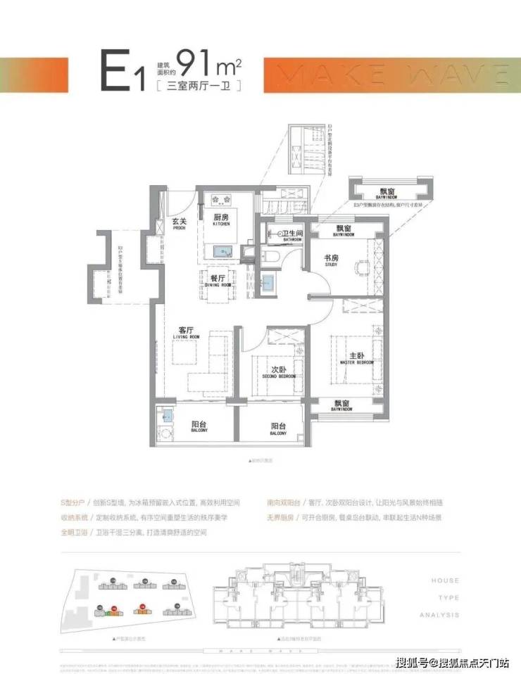 “南向双阳台+南北双飘窗”,构筑真3房户型!