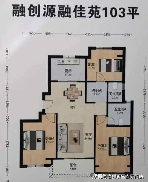 从公示的房源信息来看,户型是90㎡左右3房1卫,各个楼层都有。室内是带装修的,2024年已竣工。