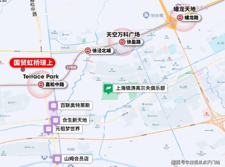 项目周边已成为上海人周末出行的打卡圣地, 蟠龙天地、天空万科广场、百联奥特莱斯、合生新天地、元祖梦世界、山姆会员店等商业、休闲综合体一路连缀。