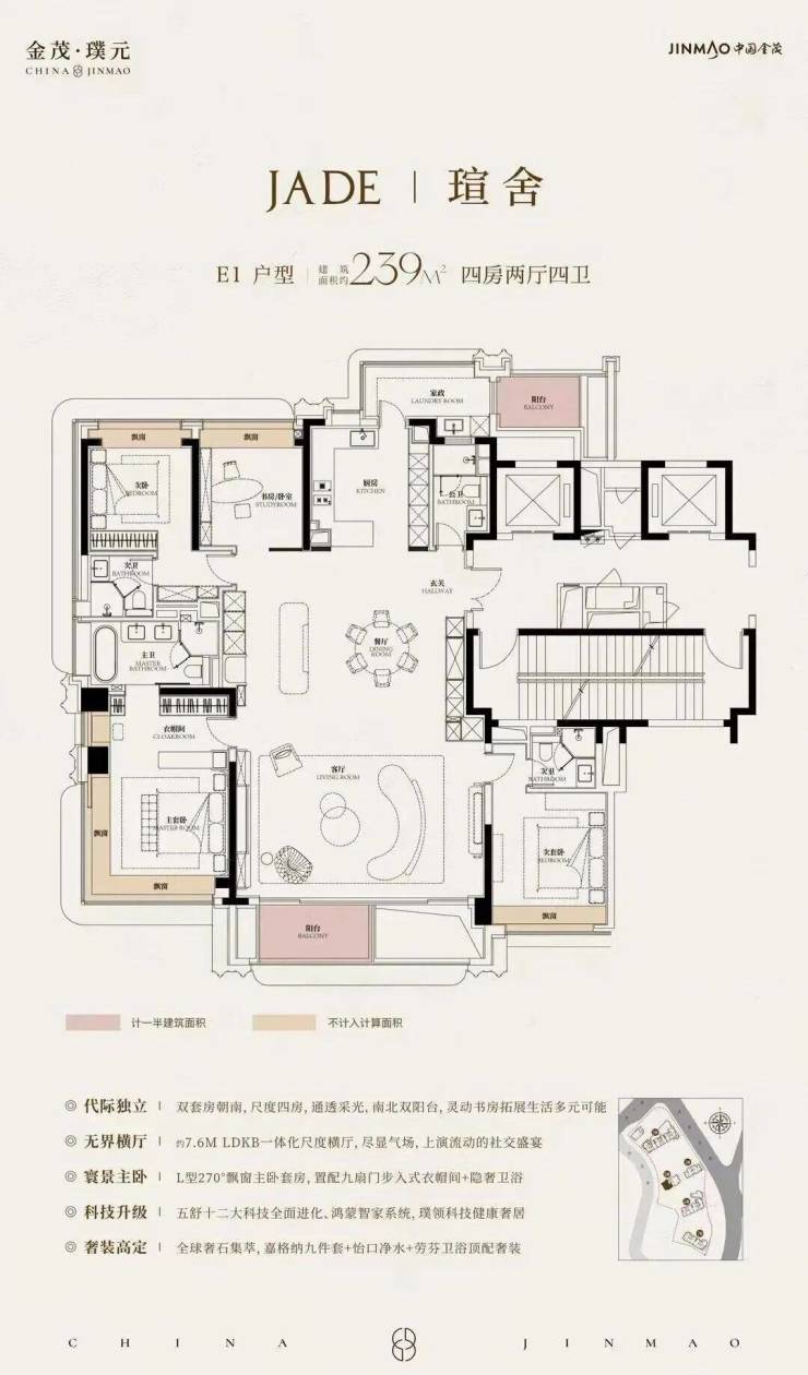 在建面约172㎡户型中,我们可以看到金茂对“三代同堂”生活方式的深刻理解!