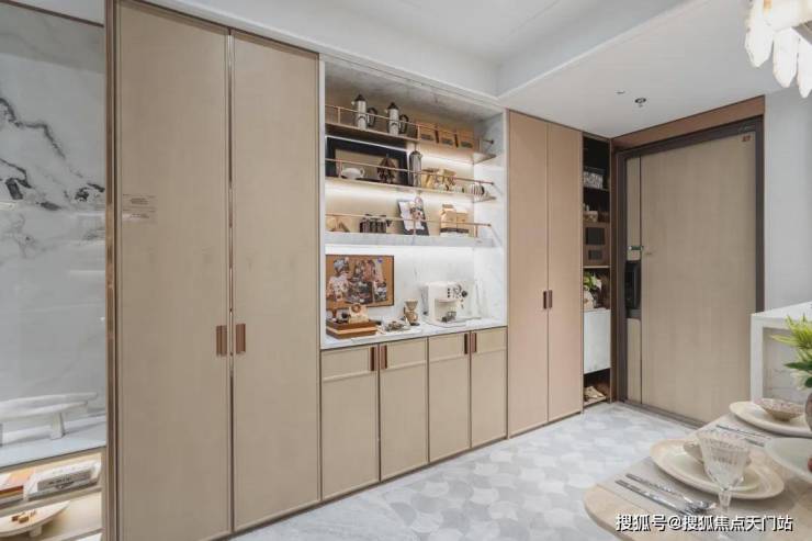 看不见的巧思——立体收纳系统:项目层高达到3.1-3.3米,借此优势创新打造了“竖向收纳”体系,通过顶部储物柜、机舱式高柜等设计,将垂直空间利用到极致,小户型也能拥有大宅的储物容量。