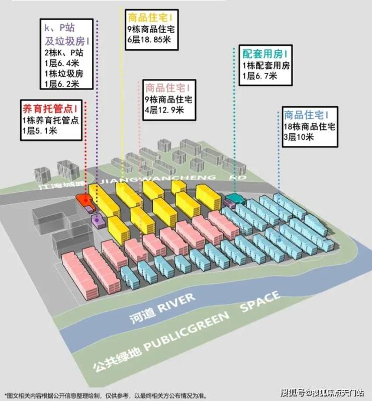 地块容积率1.1,用地面积57099.23㎡,计容建筑面积62809.15㎡,建筑限高20米,规划为低密洋房+别墅社区,西高东低,拟建9栋6层洋房、9栋4层叠加、18栋3层联排,规划总户数438户。