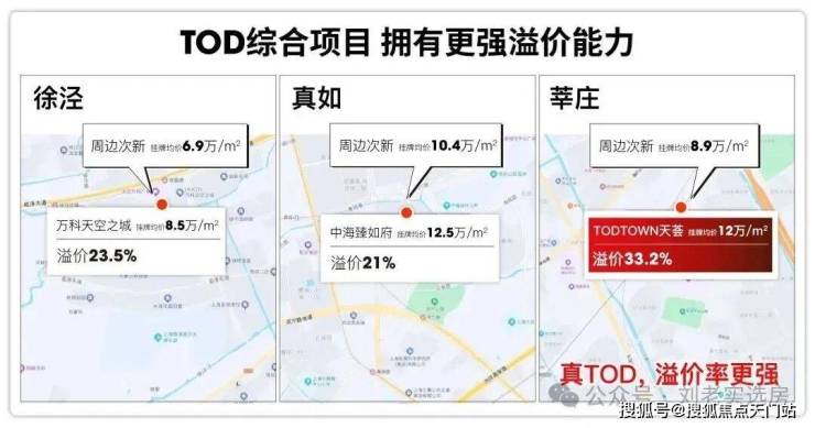 因为相比普通楼盘,TOD综合项目本身更有溢价。而像莘庄天荟、万科天空之城等都已给出了实际的例子: