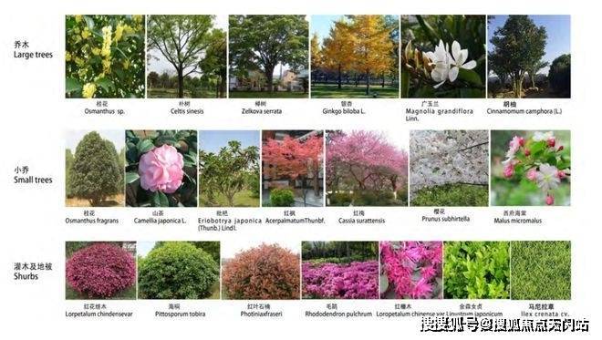 四季更迭的景观植被巧妙布局, 共有20多种乔木、小乔、灌木等植物种类,营造出“四季有色”的美妙景象。