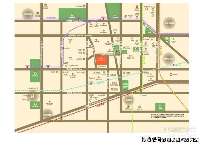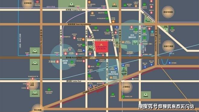交通配套方面:项目地处长宁、徐汇、闵行三区交汇的金虹桥板块的核心区位,拥有多维立体的交通,延安高架、中环线、外环线环伺。