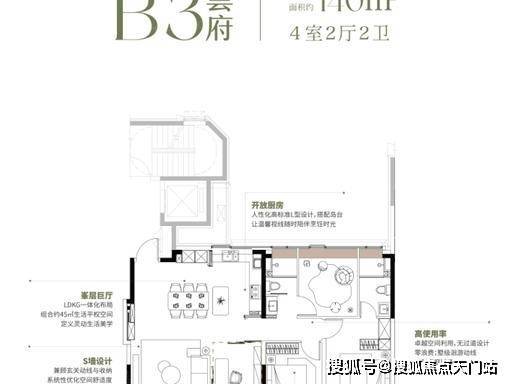 优点:一梯一户 + 四开间朝南 + 60㎡LDKB 公区,改善尺度拉满;双套房设计,全家庭成员私密保障;3.05 米层高 + 奢装标准,居住体验顶级。