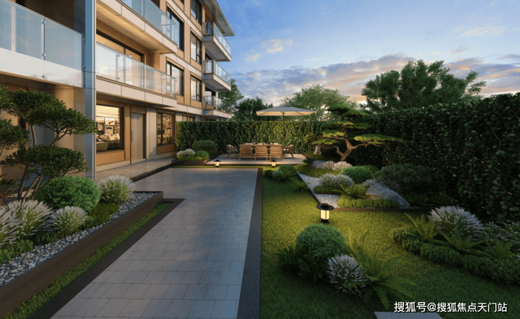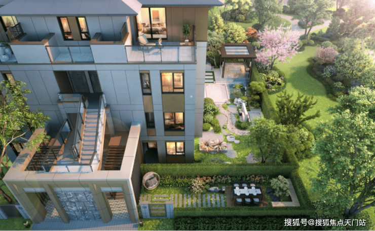 下叠精髓是亲近自然的庭前绿地,面积可观,延展出大家庭多种居住的可能性。