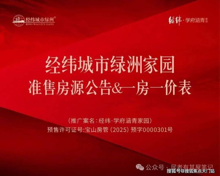 宝山中外环,经纬城市绿洲2期「经纬学府涵青」今日认购,108套主力建面约95-120㎡3-4房,均价5.7万/㎡。