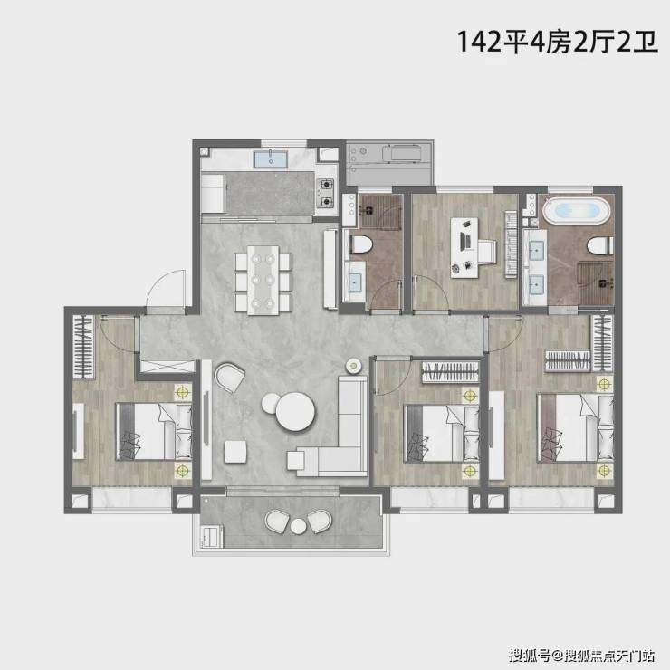 建面约142㎡4房2厅2卫户型▼