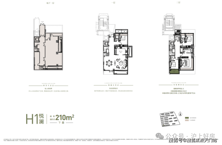 建面约182㎡ 下 叠 :庭 院+地下室(含夹层)+阳台的整体 附赠空间约210㎡ ;