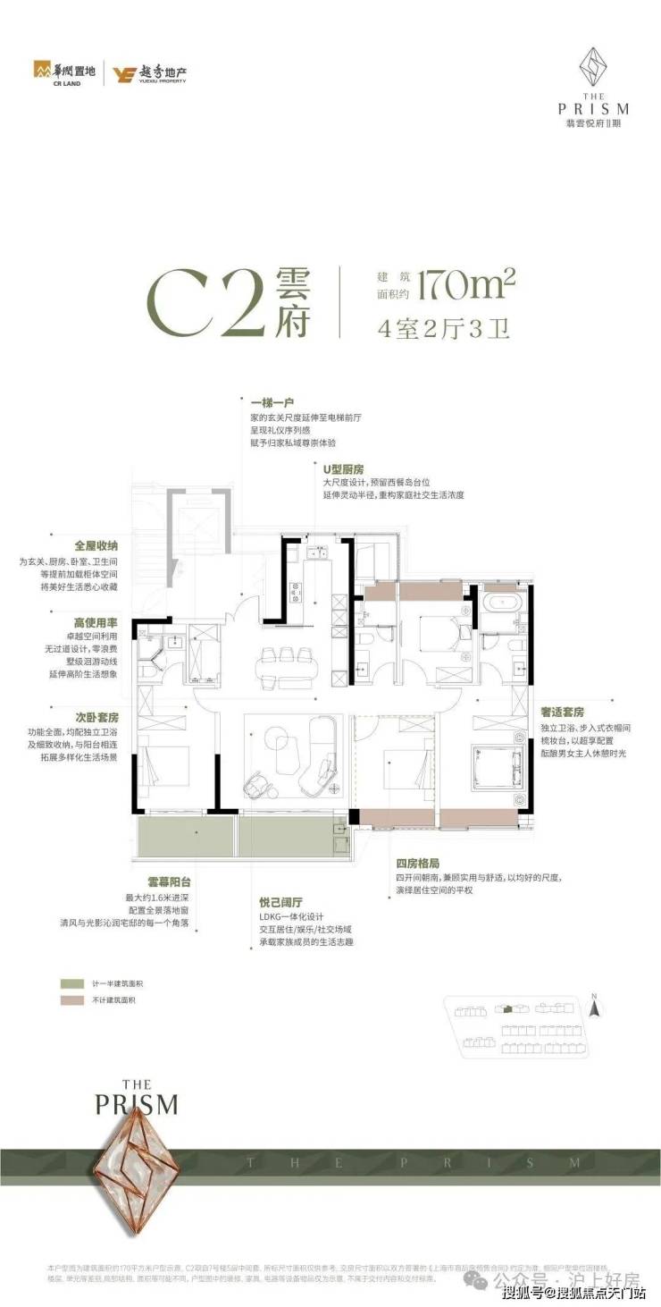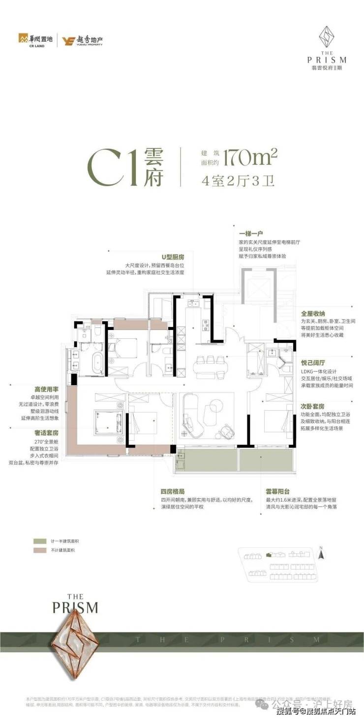 建面约170㎡产品,与市面上一般的4房产品而言,有着几点巨大的优势: