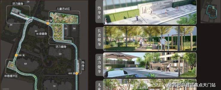 五大运动活力系统:热身区、定制主题儿童活动区、老年健身区、活力健身区和休憩缓冲区,并由约400M跑道串联