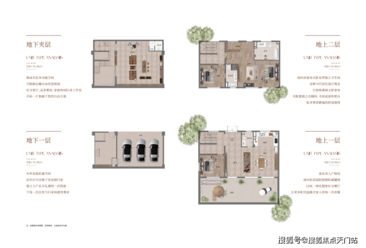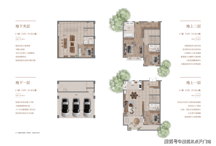 地下创意空间,地面精致花园、星空露台、多功能阁楼与夹层景观。共同营造“地下藏趣,夹层会客、地面莳花、露台观星、阁楼读书”的多本生活场景。