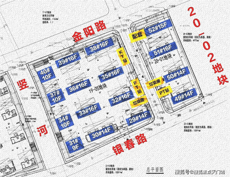 20-01地块规划:拟建1栋16F高层住宅、2栋14F高层住宅、1栋15F高层住宅以及若干配套用房, 规划住宅套数下限226套。