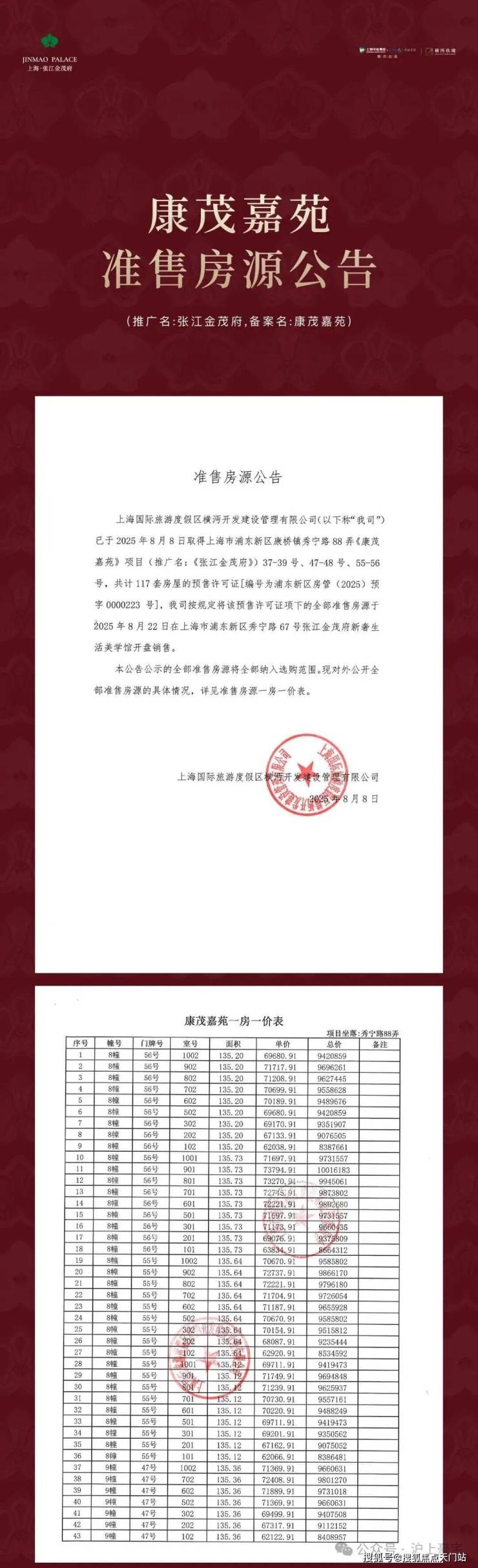 【张江金茂府】将推建面约91-200㎡洋房&叠墅产品,共计690房源!房地联动价6.8万元/㎡。据悉, 项目此次加推建面约92-136㎡科技洋房,均价69019元/㎡,共计123套房源,项目已经开盘,可直接认购,前期少量建面约92-138㎡3-4房洋房产品,及建面约188-216㎡奢境叠墅在售,均价70310元/㎡,总价约546万起,直接认购!