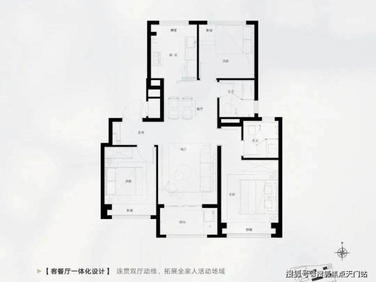 首先是四叶草格局设计,不浪费任何过道空间,让每一个平方米都能用来装载你喜爱的生活场景