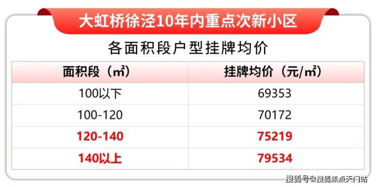 据链家网最新挂牌数据显示,目前徐泾10年内次新重点小区100㎡以下户型挂牌均价已经跌破7万/㎡。但 140㎡以上的大户型却仍然有近8万/㎡的挂牌均价,溢价小户型近15%!