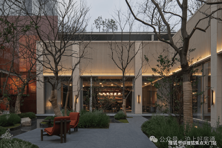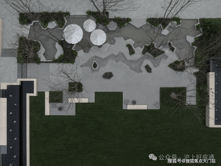 步入社区,首入眼帘的是约6米高水幕的下沉式山水庭院,与周围建筑融为一体,将自然与松弛感带给社区。