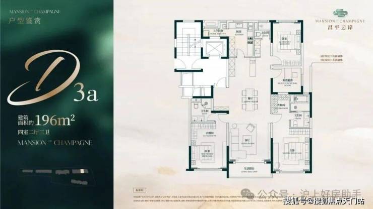 此户型最靠近苏州河,特地设计了270度转角阳台直面苏河一线景观!4个套房设计,尊崇感十足!此户型仅有6套,珍藏属性拉满!