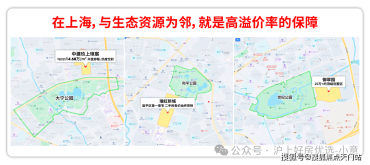 注意,这不是靠近公园。而是被 成片、连续公园所环绕,它提供的是一片可步入、可沉浸的千亩绿洲。