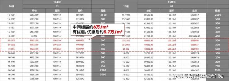 节选自项目一房一价表