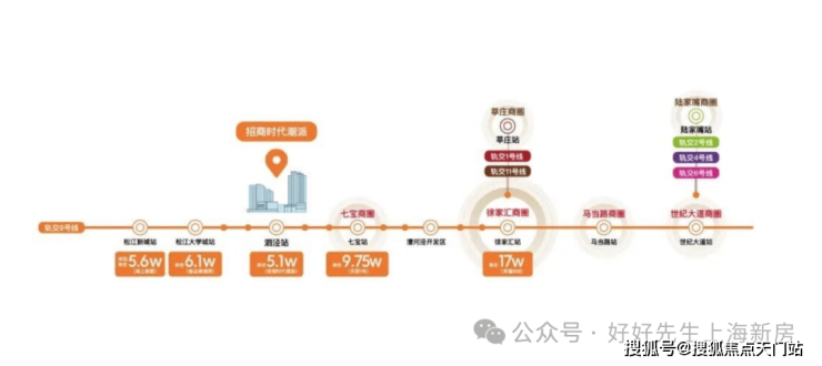 招商时代潮派 |东屿,位于9号线泗泾站,便捷交通赋能,3站七宝、6站漕河泾、9站徐家汇。作为上海的“烫金大动脉”,串联G60科创走廊,承接了漕河泾高新产业外溢效应,吸引高净值人群聚集,形成稳定的改善型置业需求。