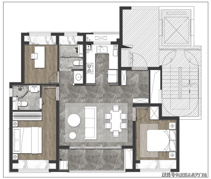 对于二人情侣,是安放衣物与家庭办公的温馨空间,衣帽间、书房、学习,充分满足二人生活的多元生活。面对三口之家,可以从婴儿房进阶为儿童房,伴随年龄结构的变化,而不断调整自己的定位。