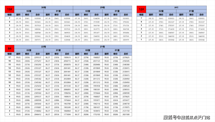 一房一价表如下: