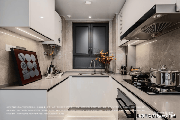 厨房配洗碗机与净水器,让烹饪更从容,让生活更便利;室内均采用 通顶门框设计,在纵向上拉伸视觉效果,更显通透大气;