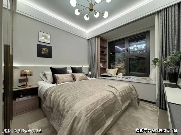 主卧软装家具都做了标准尺寸,剩下的过道空间如图所示也并不是很窄,还是比较良心的!主卧玻璃采用了三玻两腔中置百叶窗,气密性更好。