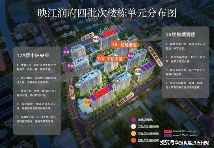 映江润府计划加推两个全新楼栋,12#中轴央座,落位项目中轴之上,尽揽五重归家礼序,对望【无界水院】与【童梦水院】星空戏水池。3#揽境奢座,近园区归家主入口,奢藏五重归家礼序,从容赏景,步步皆礼。优越的楼栋位置之上,享映江润府隐逸双水院,可以说优势都非常突出,就看谁是你更心仪的那个楼栋。