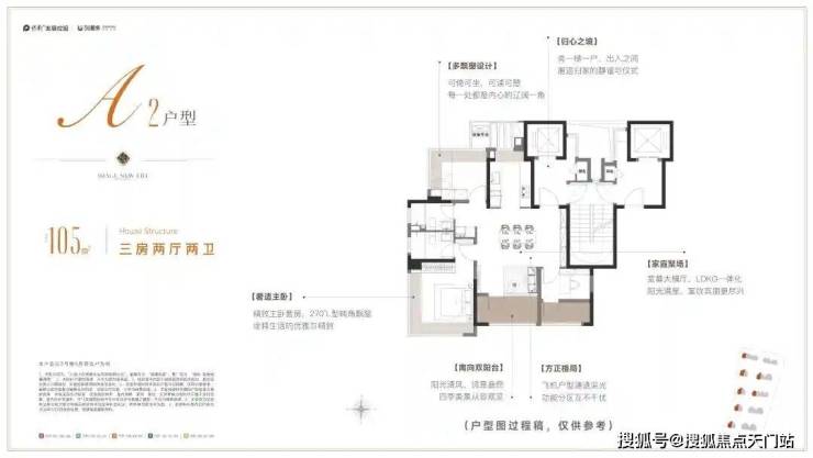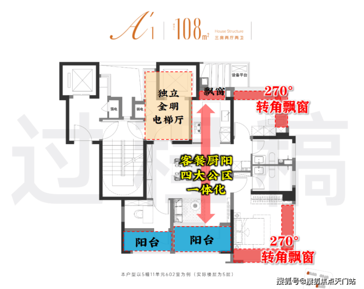 值得一提,当很多豪宅还在用转角飘窗打动客户,项目却在这个500w级新盘上拿出南北双270度「全景舱户型」。