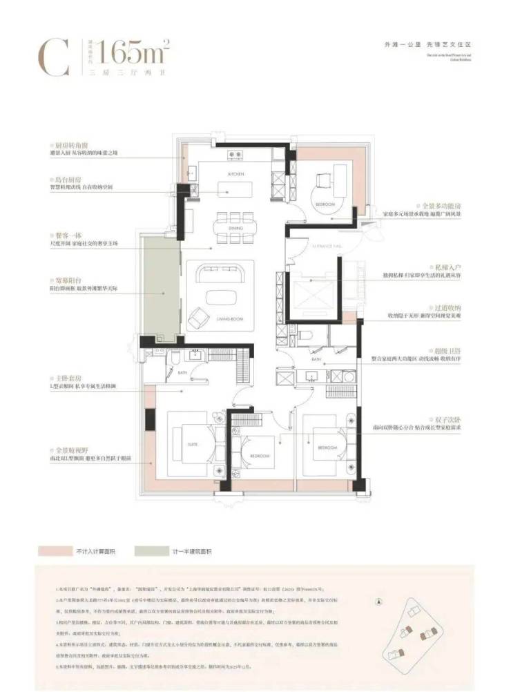 因此,外滩瑞府在建面约165㎡户型中创新推出三四房灵活定制体系。