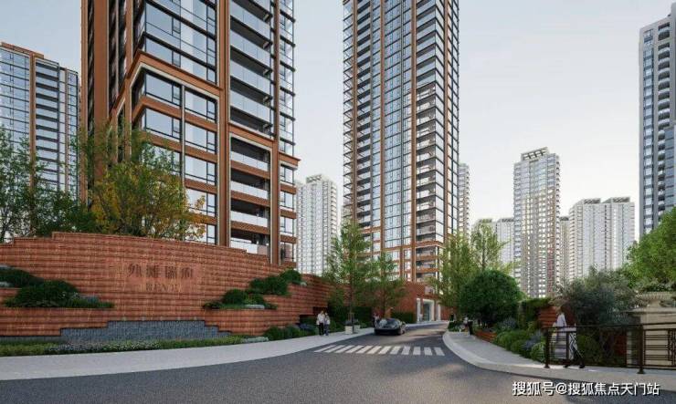 社区景观上,突破市区项目常见的「兵列树阵式」布局,通过建筑楼体的精密偏转,形成罕见的围合式社区形态。