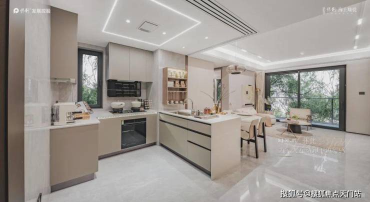 问题。厨房、餐厅、客厅三大空间联通,不仅通透感十足,还构建了一个利用率超高的家庭核心区,在这样高度开放的空间里,即使互不交流,也能保持交流和关注!