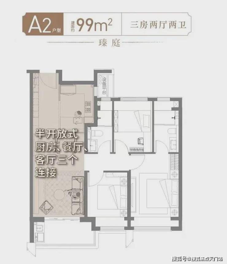 对于99㎡的居住空间,不多占、不多用面积就是最大的利好。