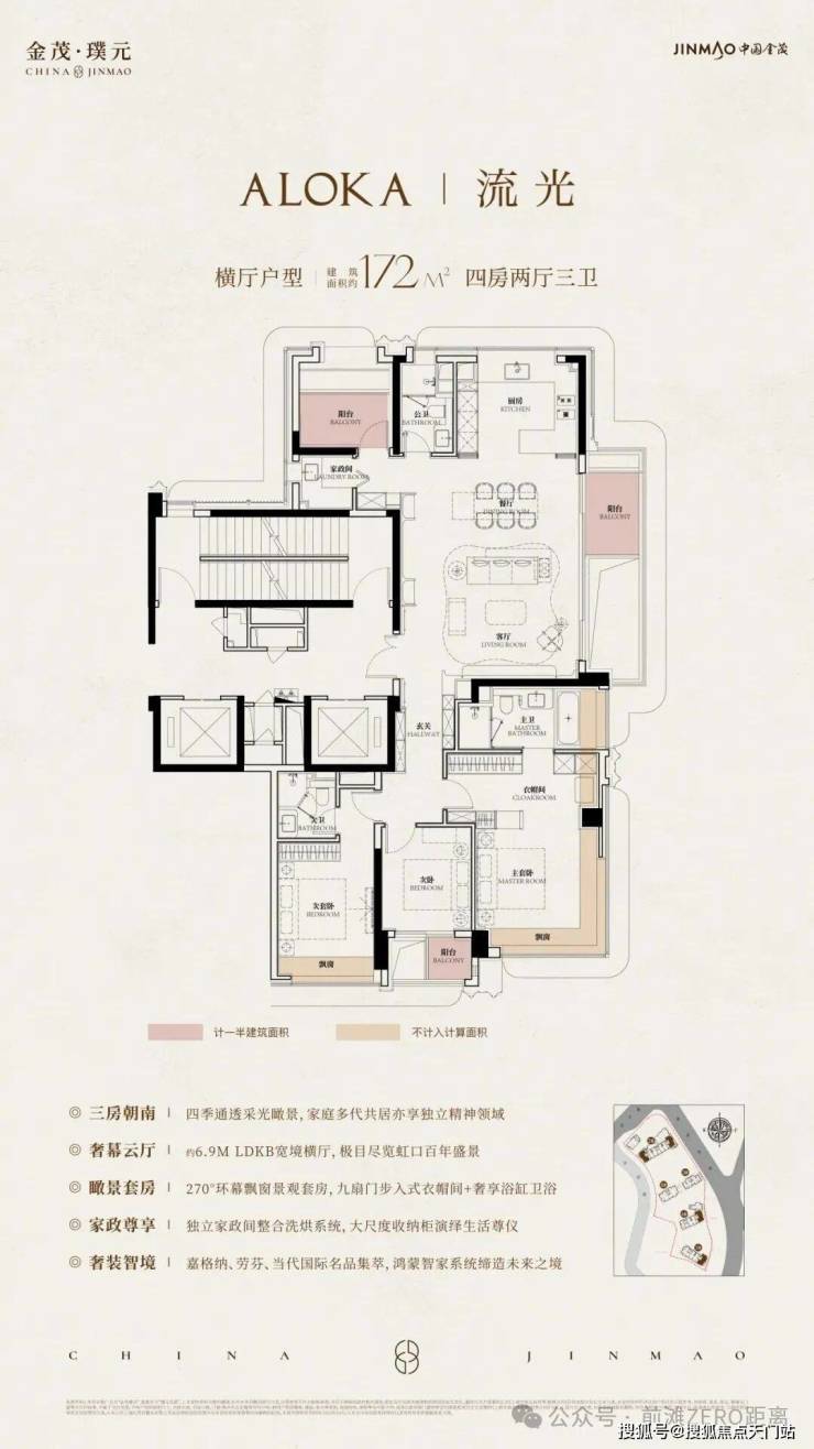 在建面约172㎡户型中,我们可以看到金茂对 “三代同堂”生活方式的深刻理解!